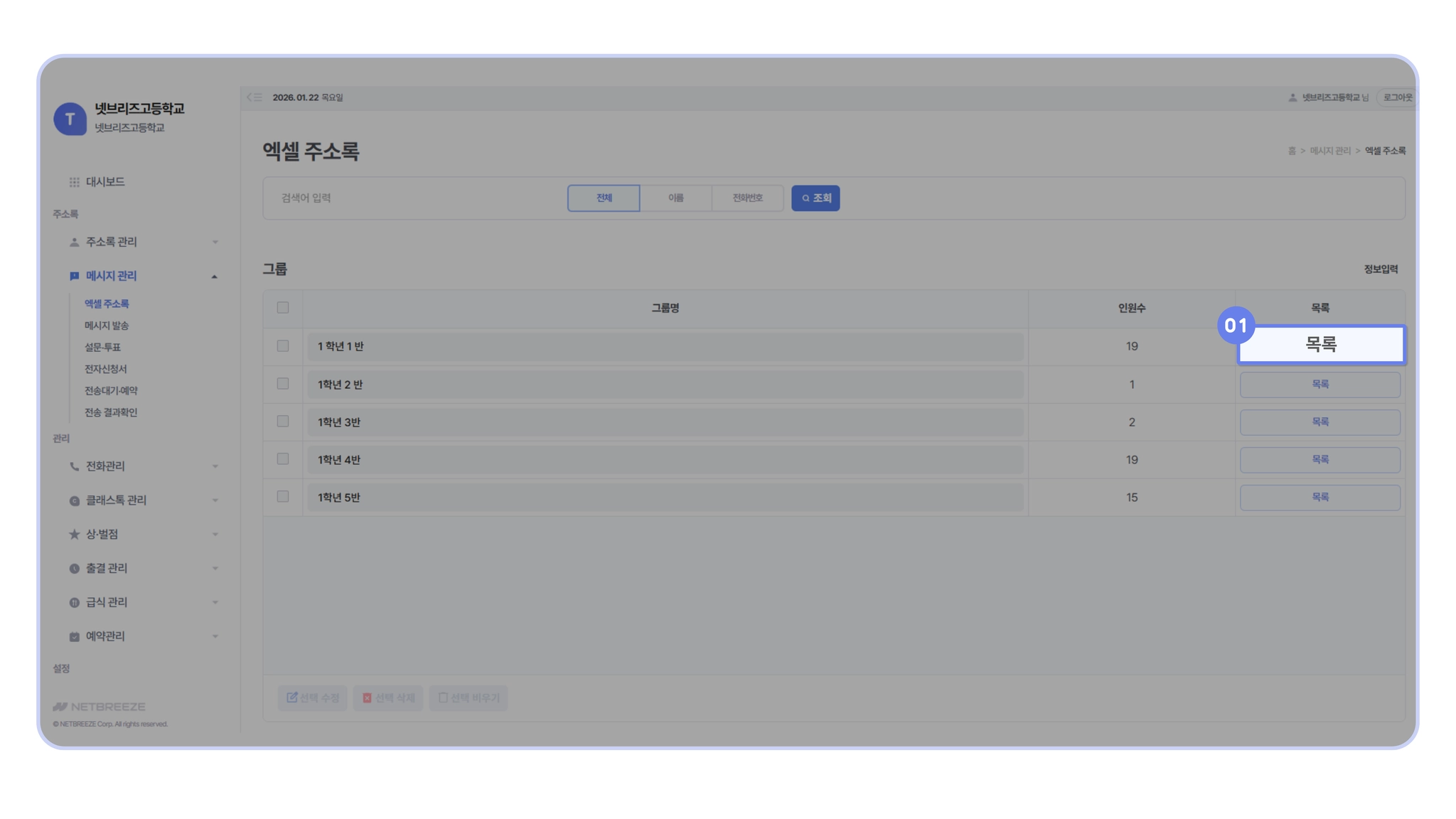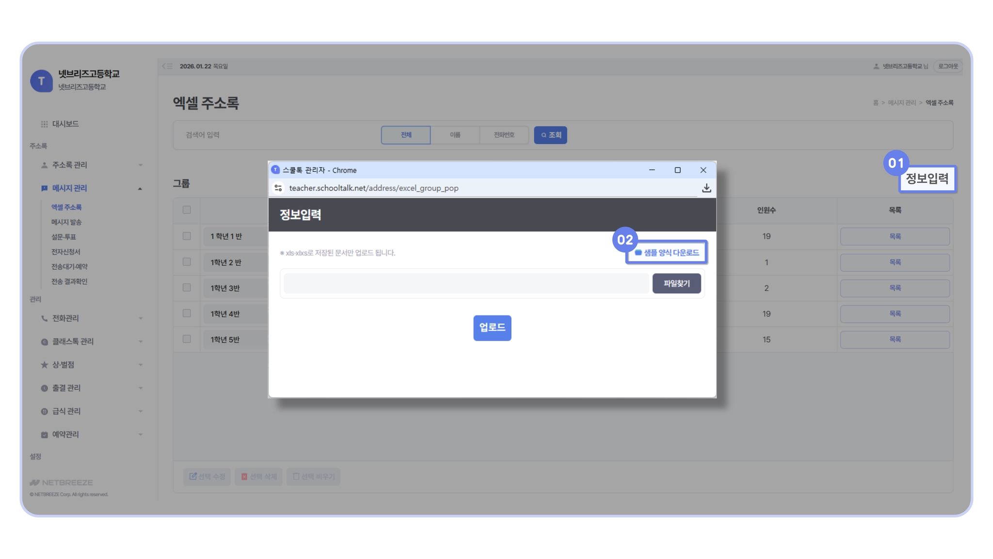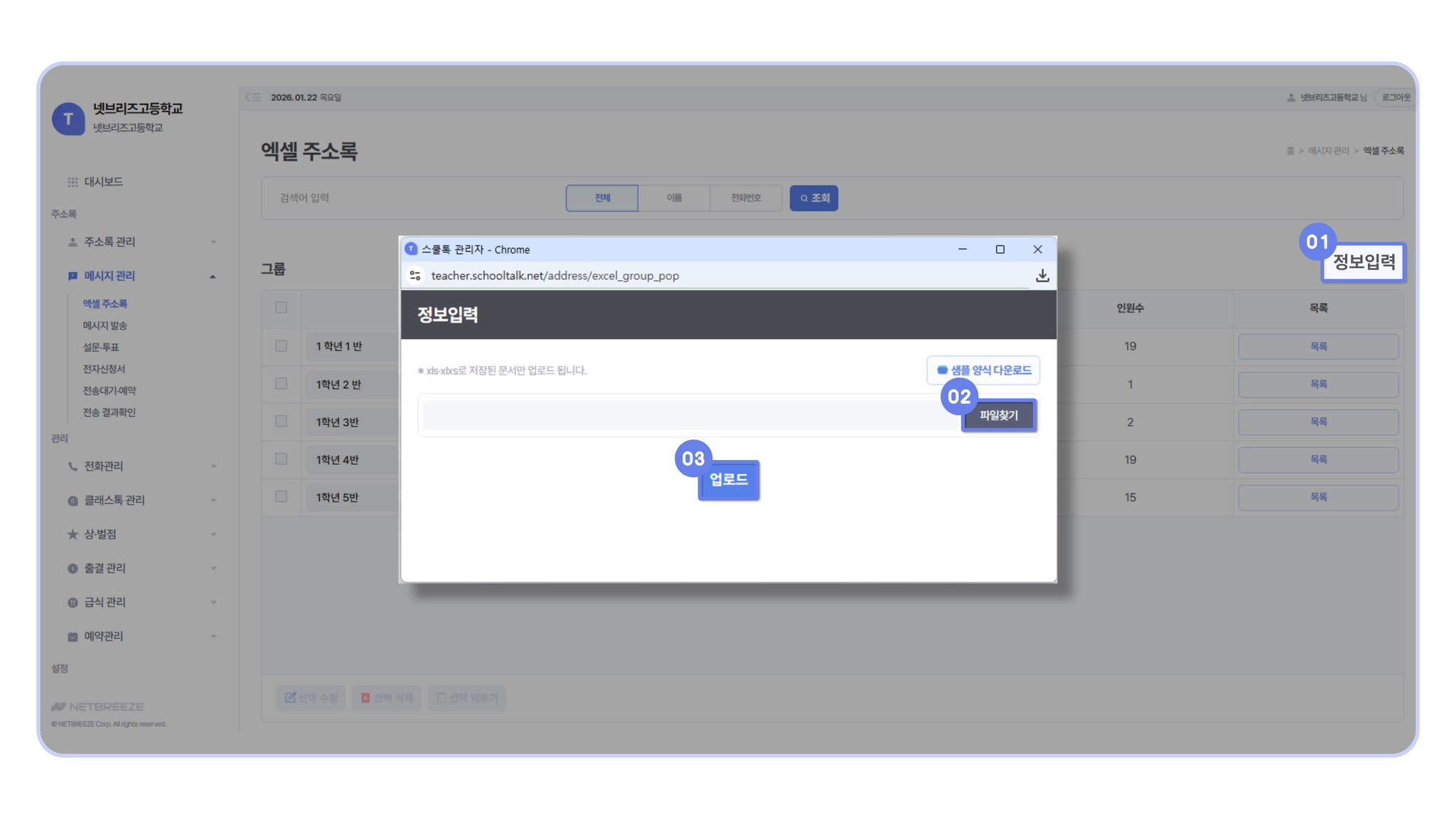 메시지 관리 > 액셀 주소록 등록하기]