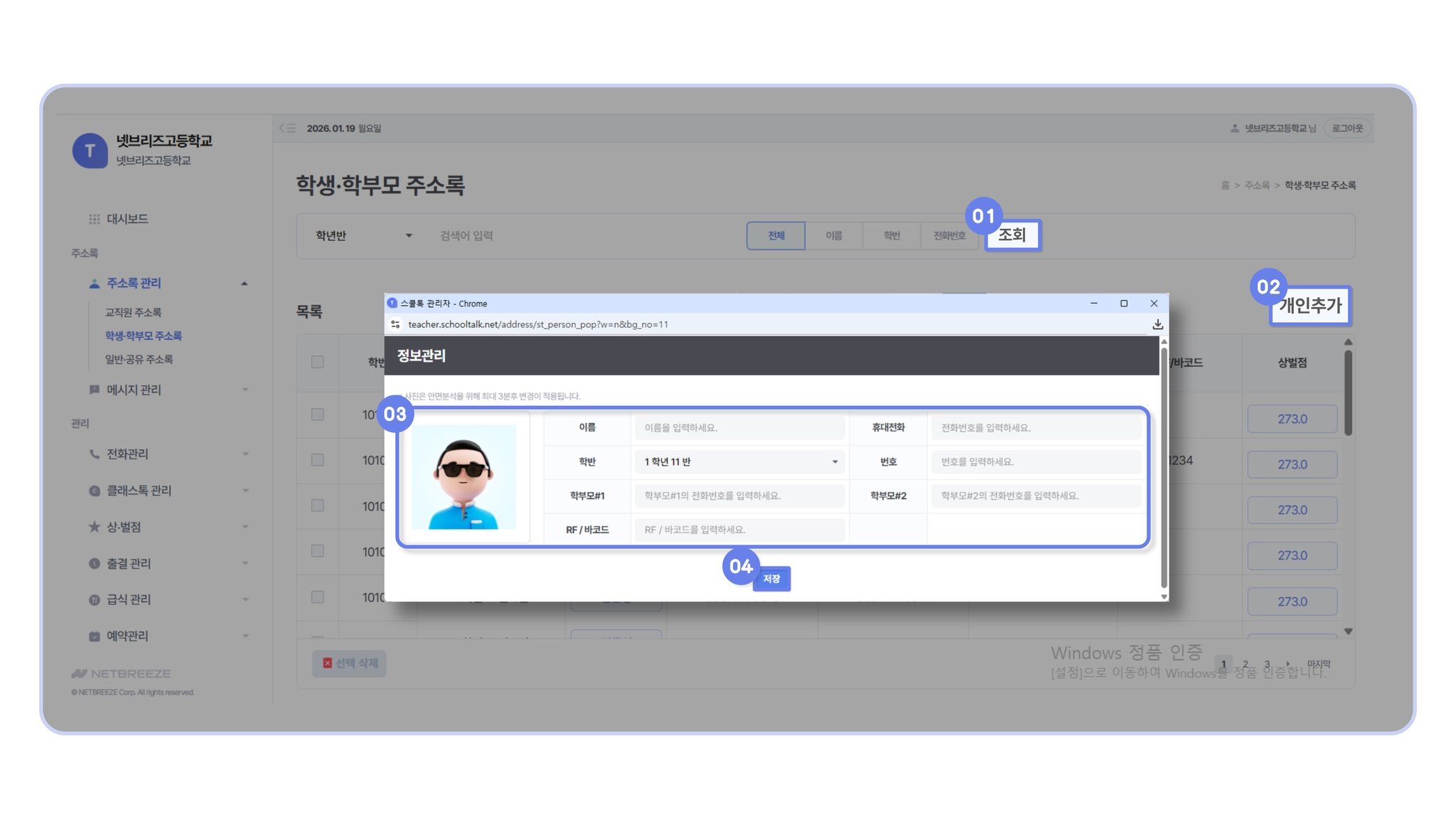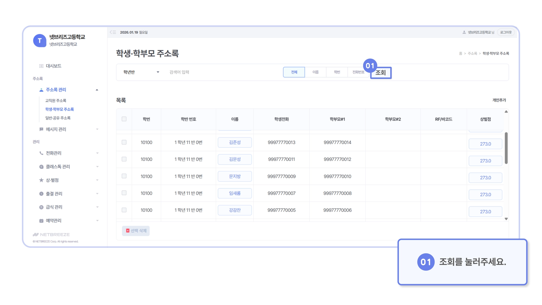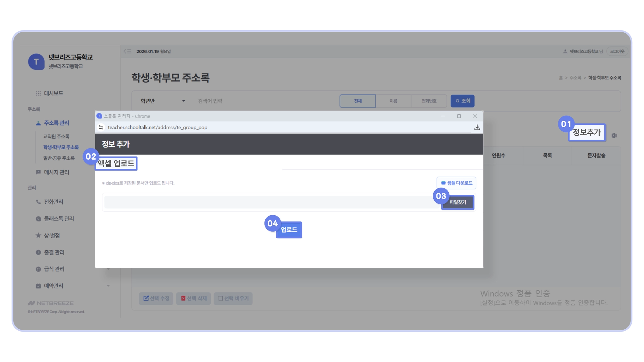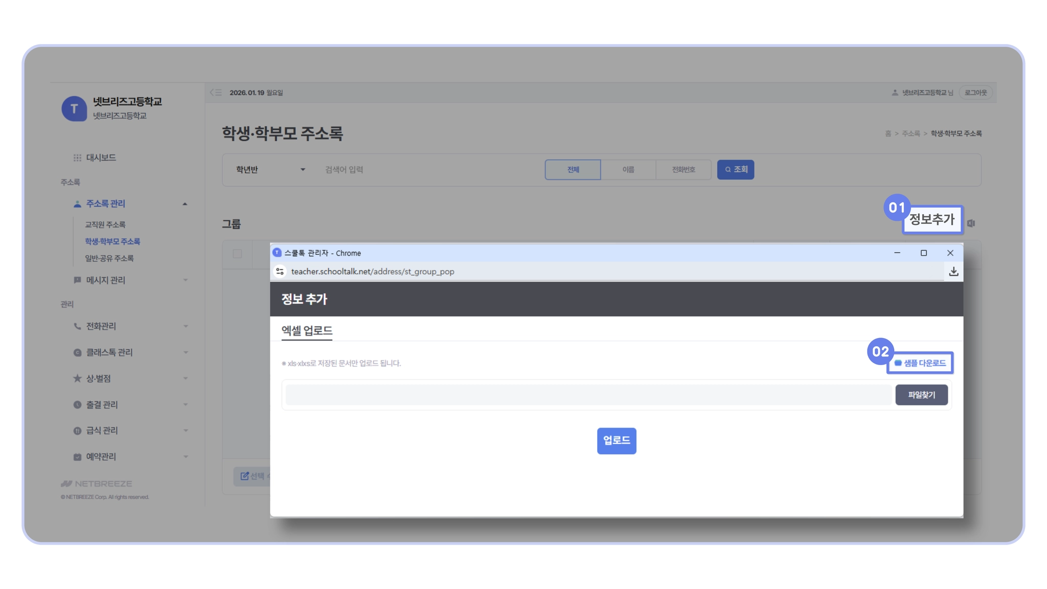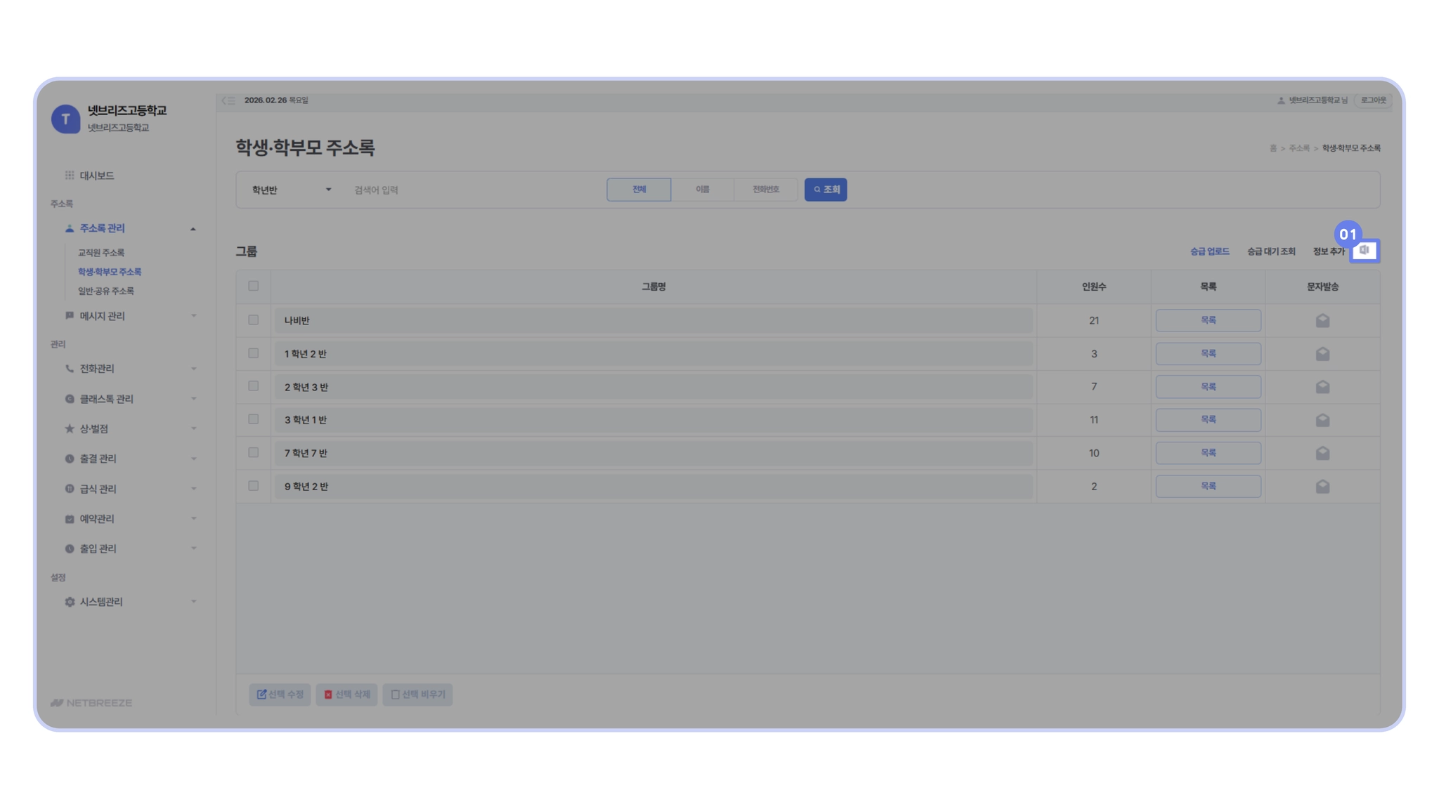 주소록 관리 > 학생 · 학부모 주소록 등록하기]