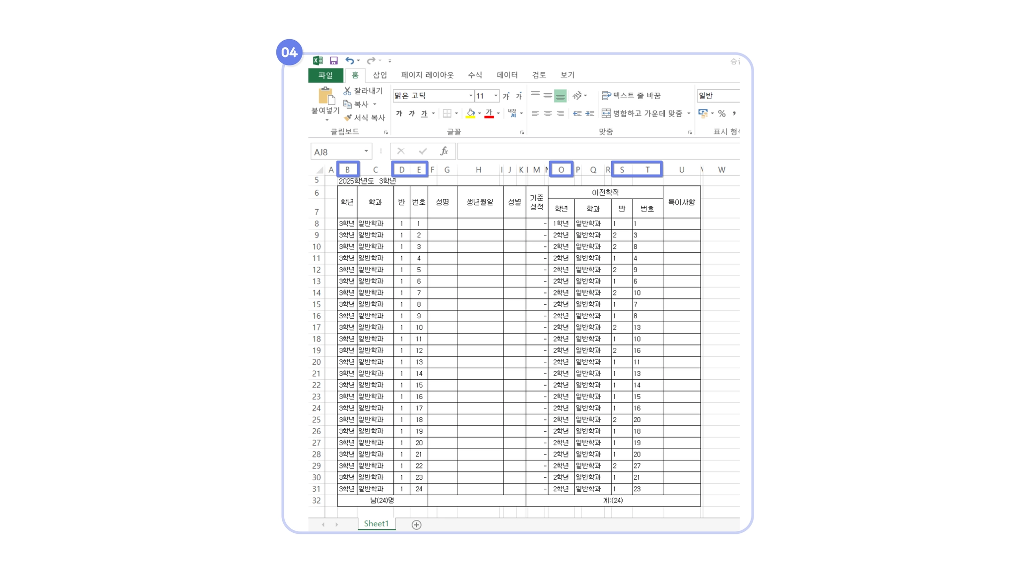 학년/반 형식: 학생별로 승급 전(B.D.E) 정보와 승급 후(O.S.T) 정보를 매칭하여 정확하게 입력 해주셔야 합니다.