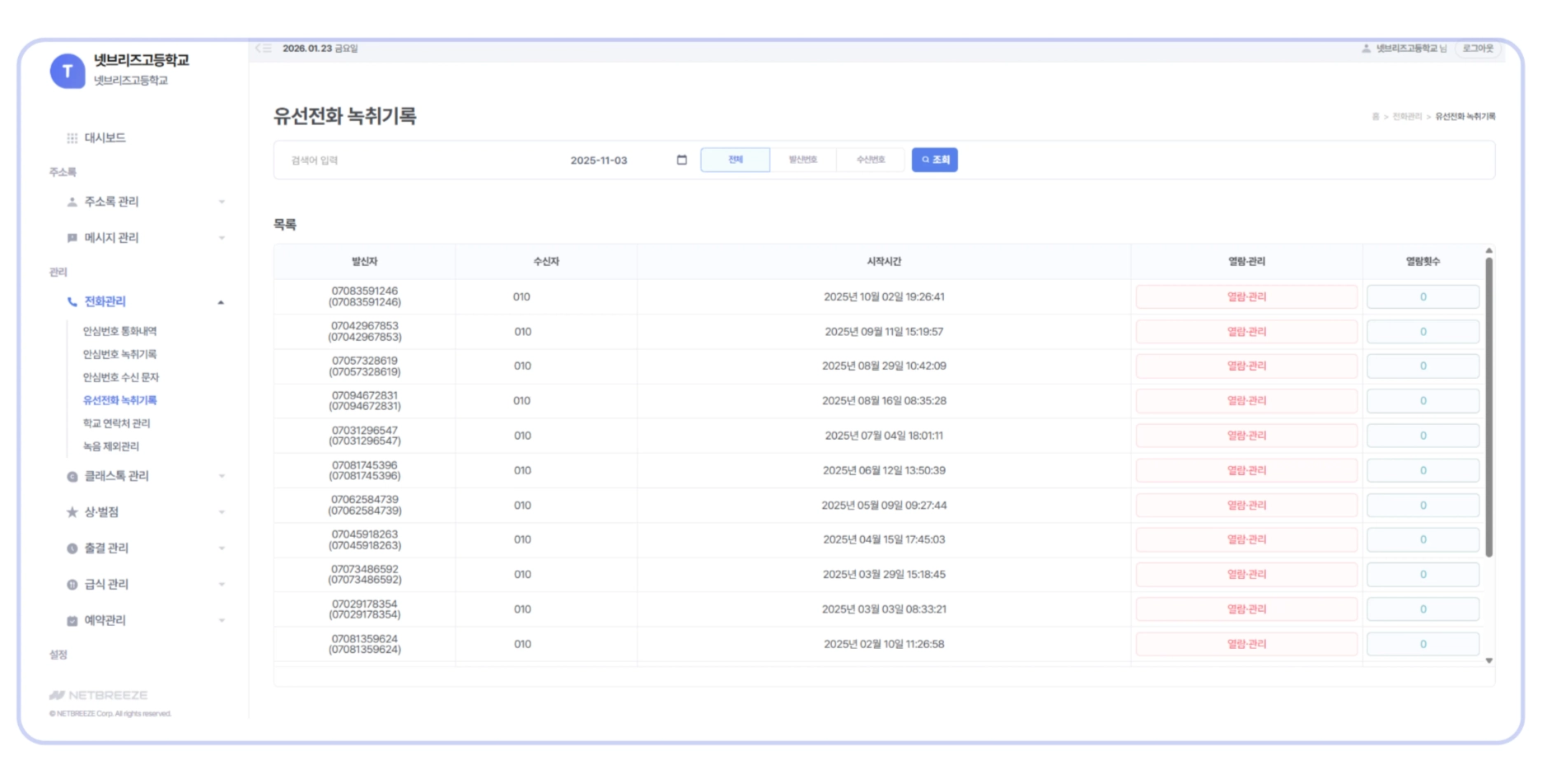 안심번호뿐만 아니라 교내 유선전화기를 이용해 주고받은 통화 내용도 이곳에 안전하게 보관됩니다.