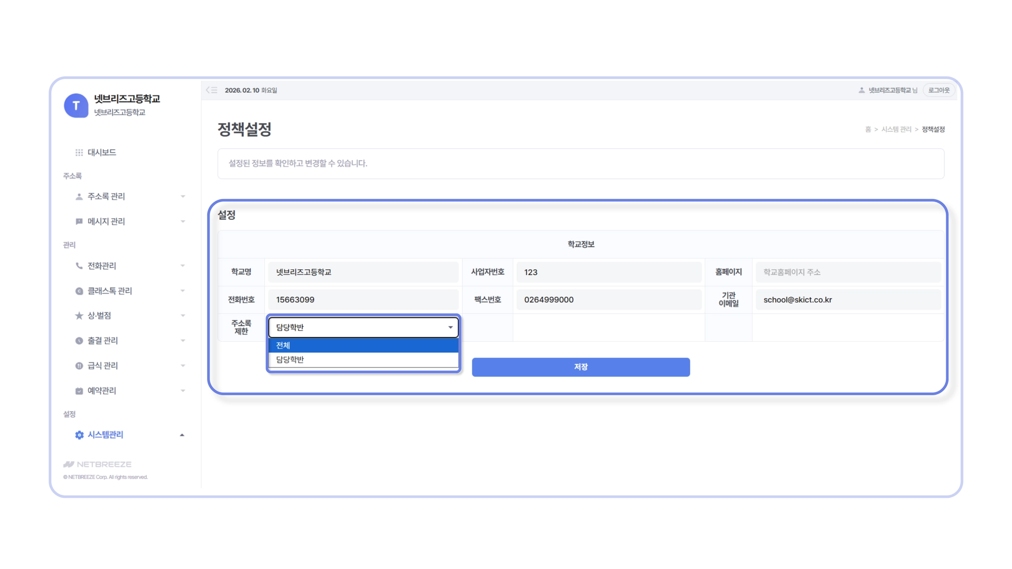 스쿨톡 서비스를 우리 학교에 딱 맞게 세팅하는 공간이에요.